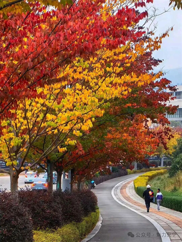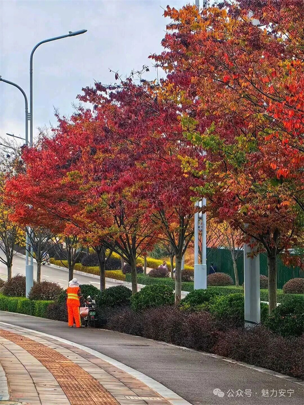 當深秋的風吹過安寧,紅黃樹葉便成了秋季的限定顏料,在街頭巷尾潑墨出一幅熱烈的畫卷。